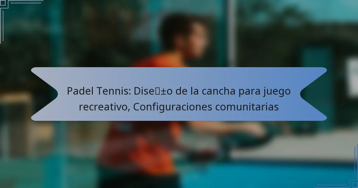 Padel Tennis: Diseño de la cancha para juego recreativo, Configuraciones comunitarias